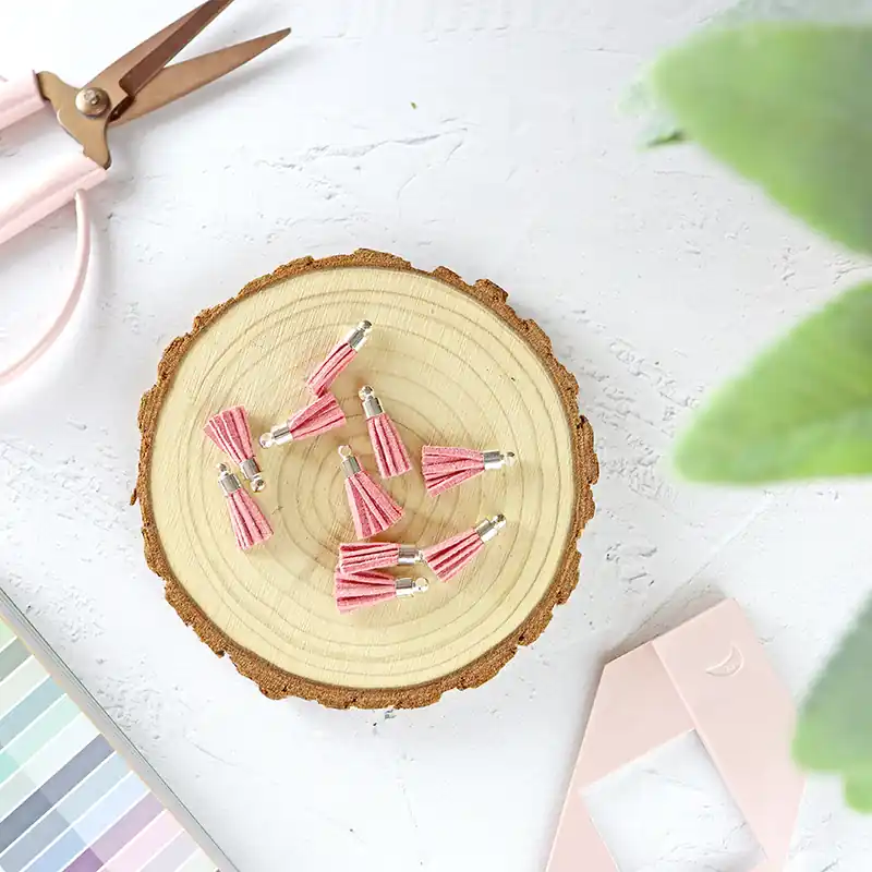 El set de Mini Tassels Rosa incluye diez borlitas para decorar tu proyecto.