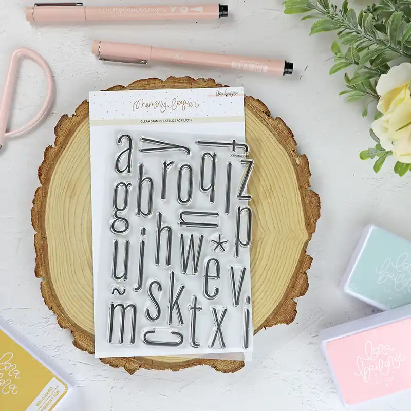 Set de sellos Alfabeto Thin Minúsculas de Lora Bailora para documentar tus proyectos.