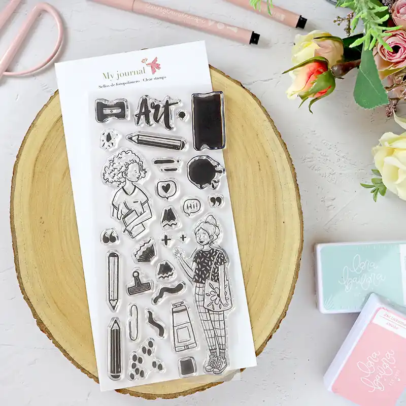 Set de sellos Artista-My Journal, de Lora Bailora, para documentar tus proyectos.