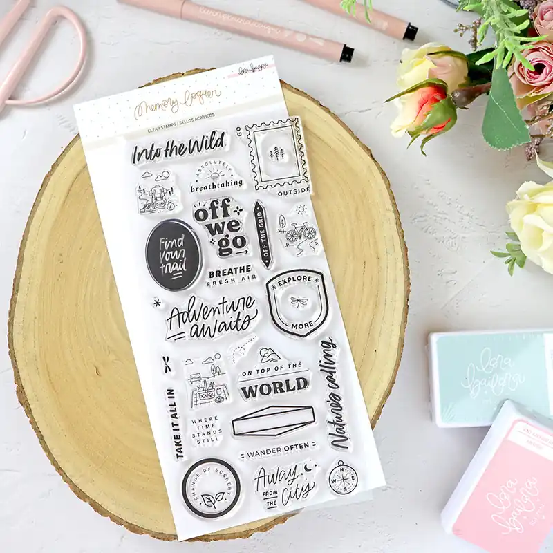 Set de sellos Into The Wild, de Lora Bailora, para documentar tus proyectos.