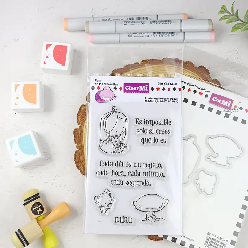 El set de sellos+troquel Pais de las Maravillas de ClearMi es el producto perfecto para crear die cuts y decoraciones para tus tarjetas y proyectos de scrapbooking.