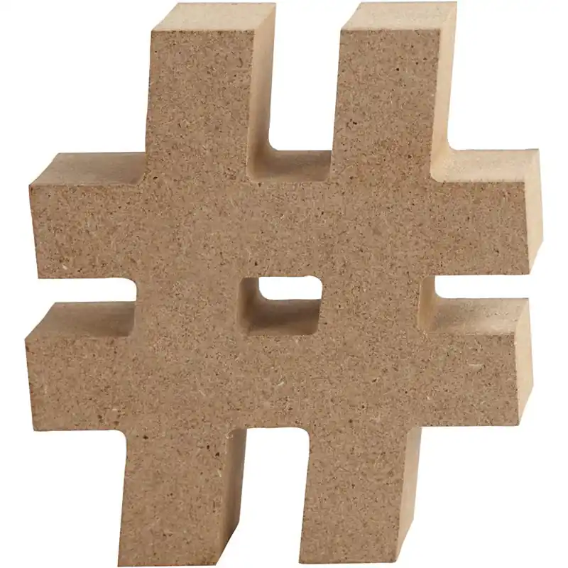 Símbolo, #, A. 8 cm, grosor 1,5 cm, MDF, 1ud