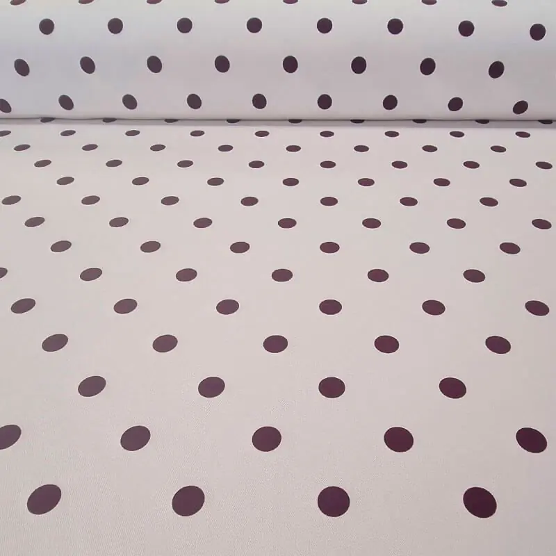 Tela Bielástica Beige con Lunares Burdeos de 2cm (ancho 1,50M) Promoción