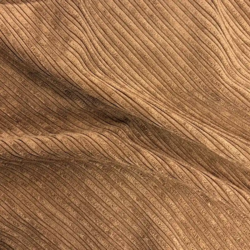 Esta tela de borreguito beige con interior de canalé marrón es un tejido doble cara ideal para confecciones de invierno. Su exterior de borreguito es extremadamente suave, cálido y esponjoso, mientras que el interior de canalé en tono marrón aporta estabilidad, textura y un acabado muy profesional.