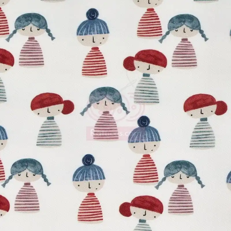 Tela de viyela de 100% algodón, con estampado digital de muñecas.
