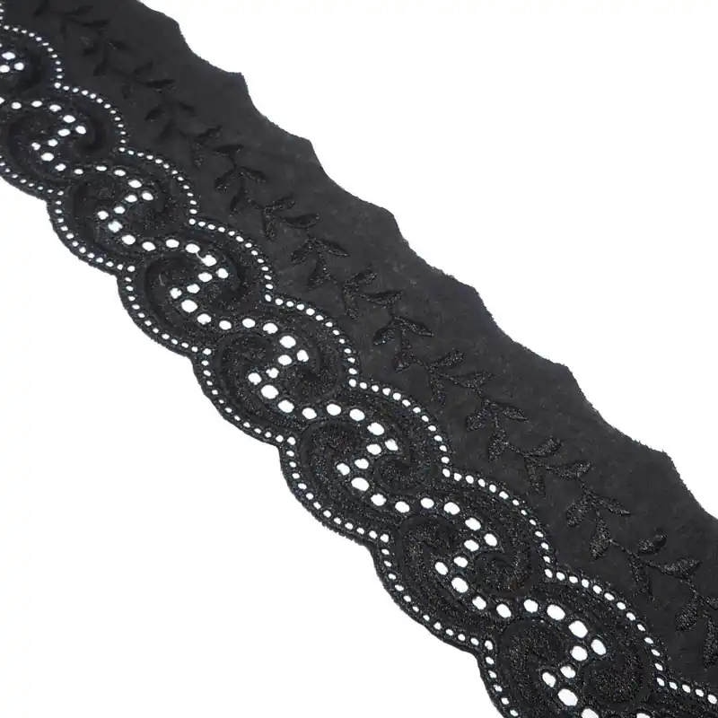 Tira bordada en negro. 5,5cm ancho – Negro Oferta