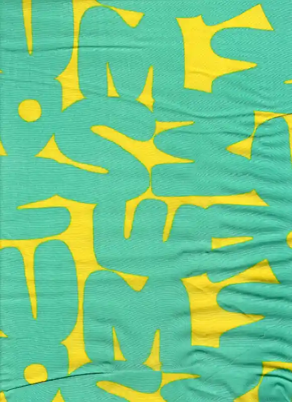 Viscosa de fondo amarillo con estampado de grandes letras en verde