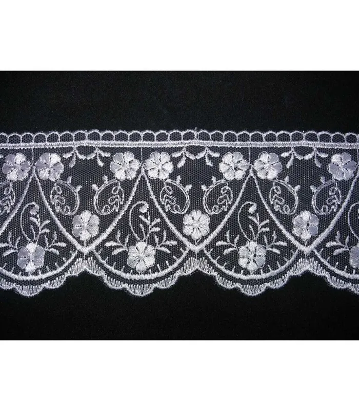 Tul Bordado – Ancho 7cm – Pieza 25 metros – 3 colores – Blanco Barato