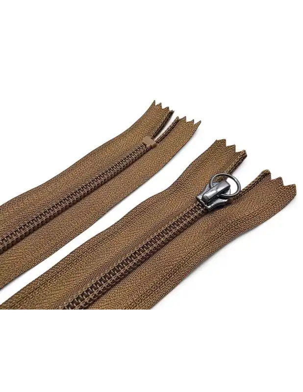 Cremallera de espiral YKK Malla 5, 20 cm, Marrón C/858, Cursor Niquel Negro con anilla